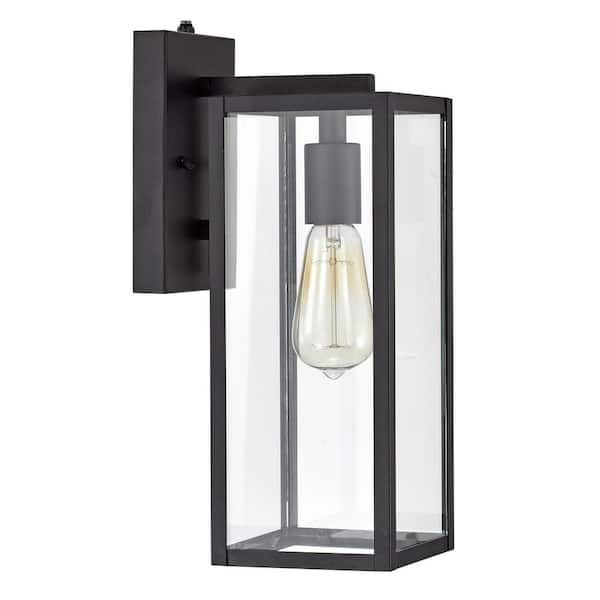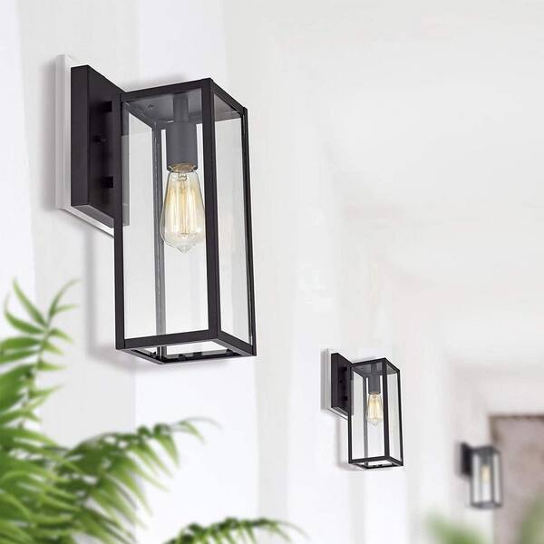 14.50 in. Textured Black Outdoor Light Control Wall Lantern Sconce with Clear Glass Shade Weather Resistant