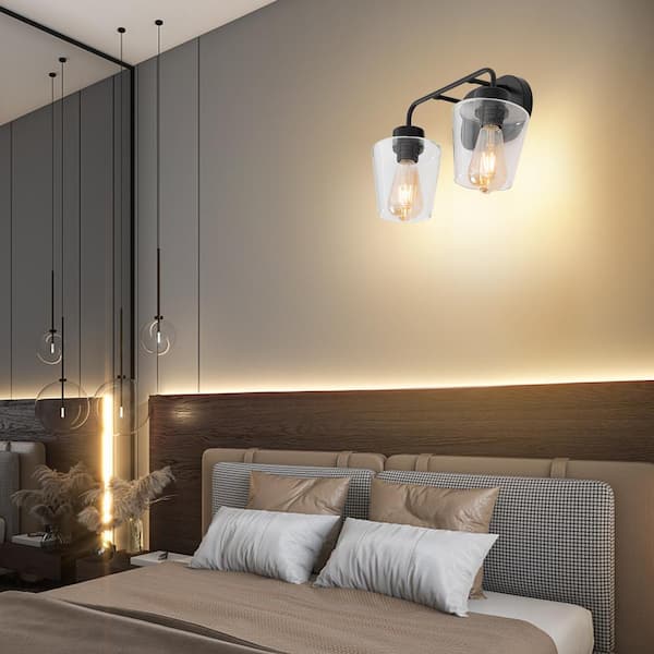 14.56 in. 2-Light Black Modern Wall Sconce with Clear Glass Shade, No Bulbs Included