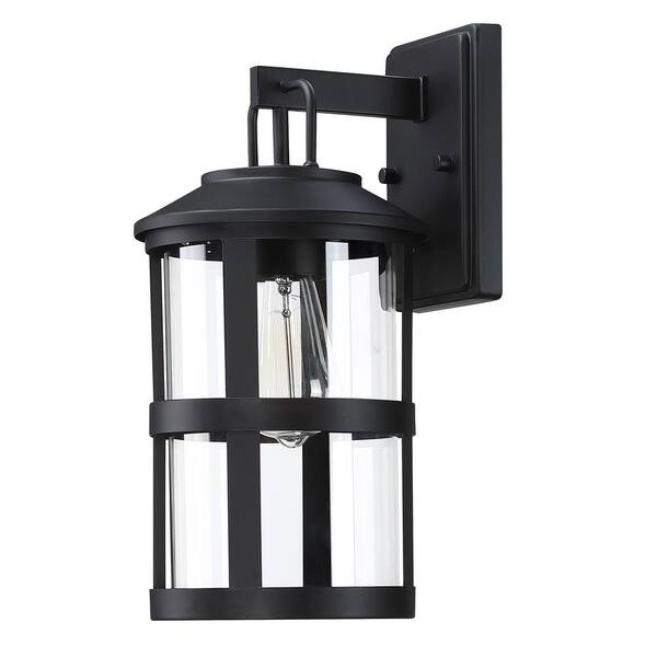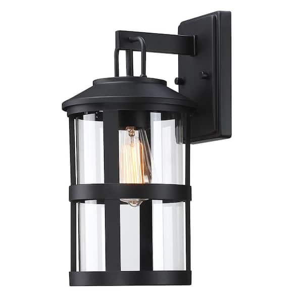 14.58 in. 1- Light Black Industrial Outdoor Wall Mount Lantern Sconce with Clear Glass Shade, No Bulbs Included