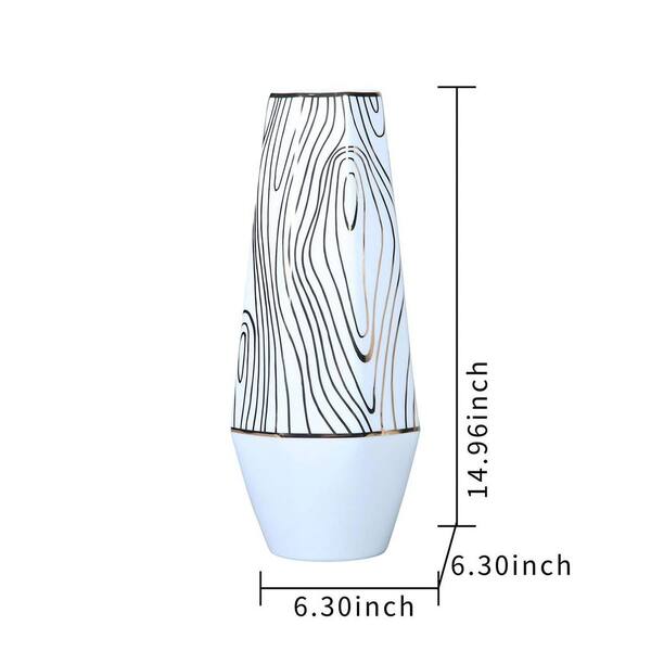 14.96 in. H Elegant White Ceramic Vase with Gold Wood Grain Design: A Timeless Touch for Your Home