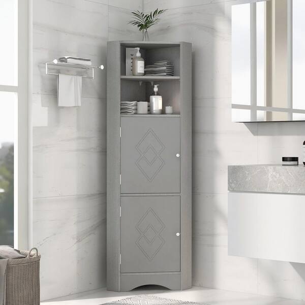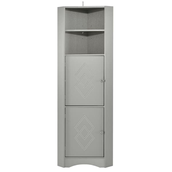 14.96 in. W x 14.96 in. D x 61.02 in. H Gray Tall Bathroom Corner Linen Cabinet with Doors and Adjustable Shelves