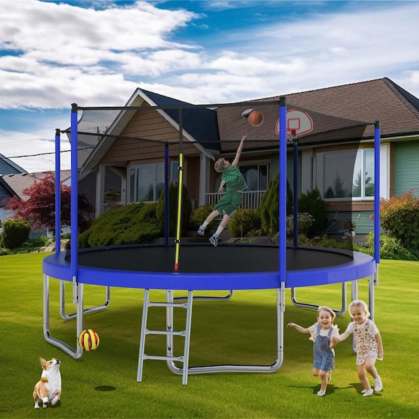 14 ft. for Kids Children with Safety Enclosure Net Outdoor Backyards Large Recreational Trampoline, Blue