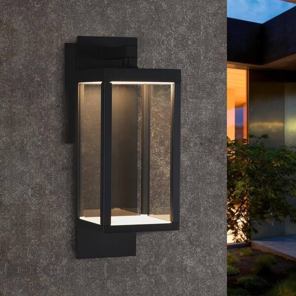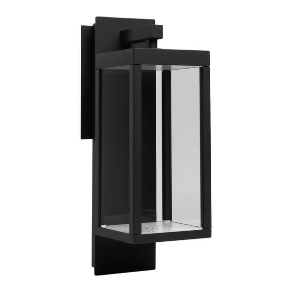 14 in. 1-Light Matte Black Modern Outdoor Wall Lantern with Clear Glass