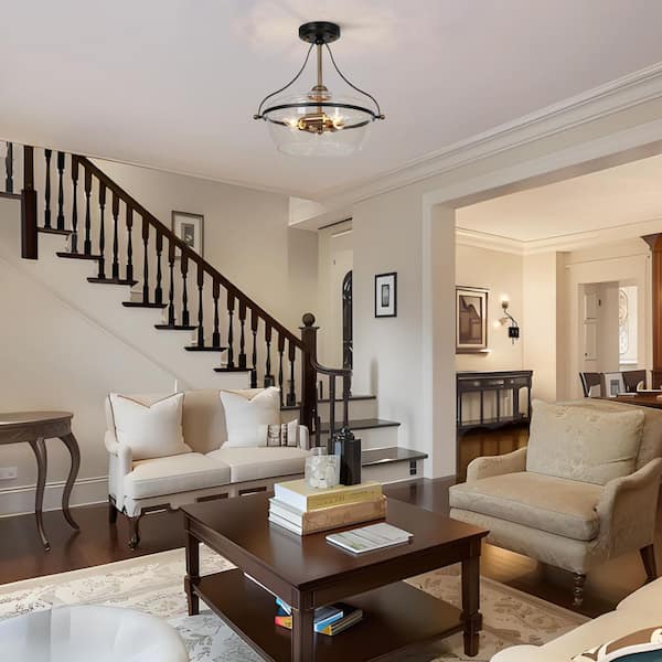 14 in. 3-Light Brass Gold Modern Semi-Flush Mount Ceiling Light with Clear Glass, Black Ceiling Lights for the Hallway