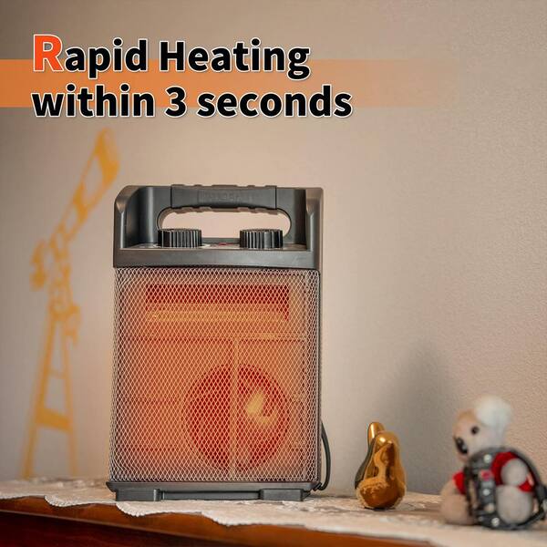 14 in. 5120 BTU Electric Utility Space Heater with Thermostat Control, Built-in Carrying Handle and Cool Touch
