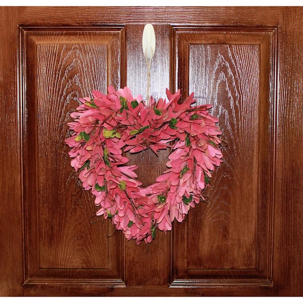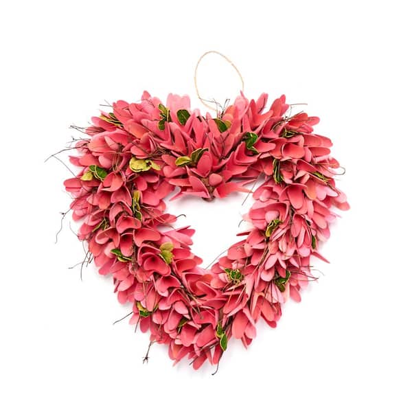 14 in. Artificial Wood Curl Heart Wreath with Twigs and Green Leaves