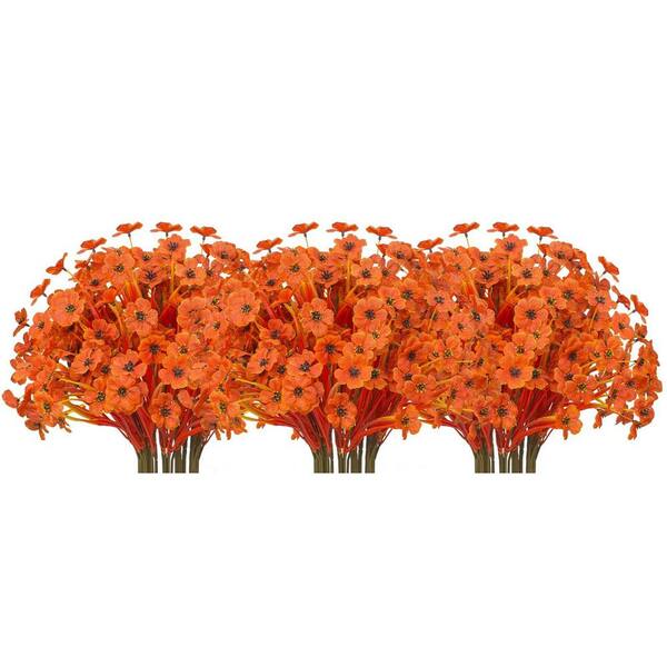 14 in. Deep Orange Indoor/Outdoor UV Resistant Faux Artificial Orchid Flower, 21-Bundles