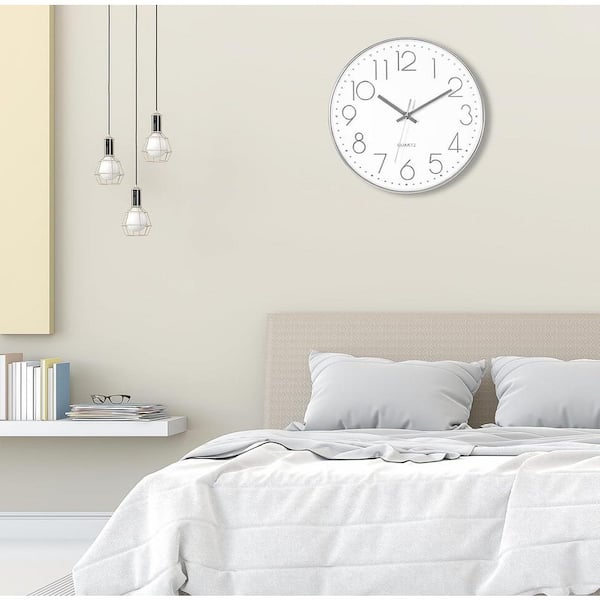 14 in. Silver Analog Large Silent Non-Ticking Battery Operated Round Quartz Modern Wall Clock