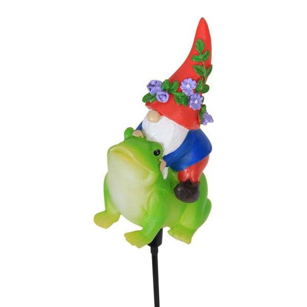 14 in. Solar Gnome Riding Frog