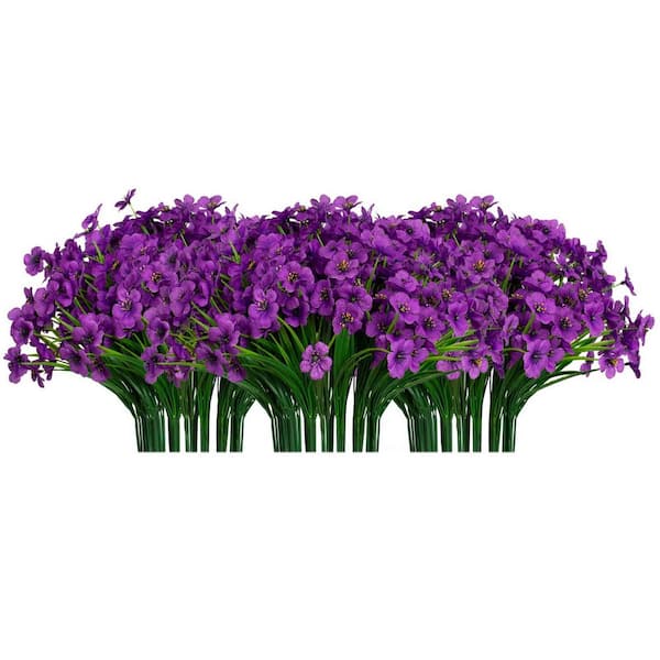14 in. Violet Purple Indoor/Outdoor UV Resistant Faux Artificial Orchid Flower, 21-Bundles