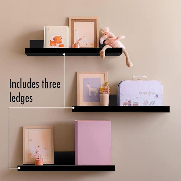 14 in. W x 4 in. D Black Floating Shelves Decorative Wall Shelf (Set of 3)