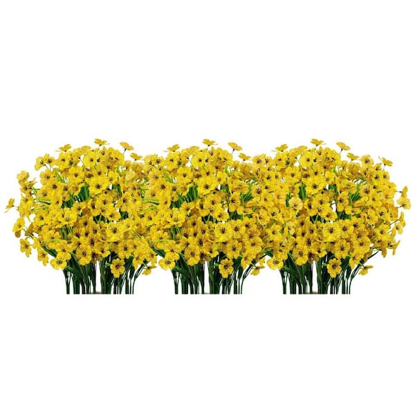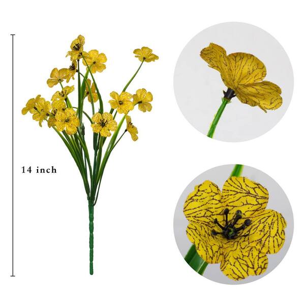 14 in. Yellow Indoor/Outdoor UV Resistant Artificial Orchid Flower, 21 Bundles