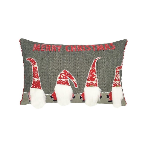 14 in. x 22 in. Merry Christmas Gnomes Pillow, Gray
