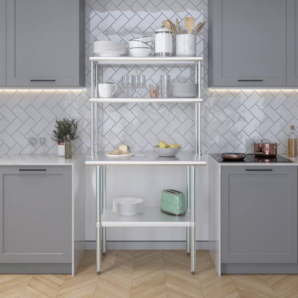 14 in. x 36 in. Stainless Steel Double Over Shelf for Kitchen Utility Table 2-Tier Shelf for Kitchen Prep Table