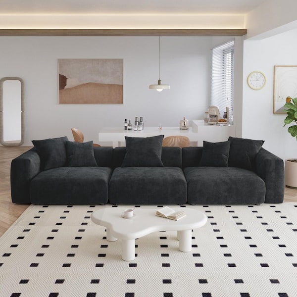 141.7 in. Square Arm Corduroy 3-Piece Modular Living Room Sectional Sofa with Deep Seat in Black