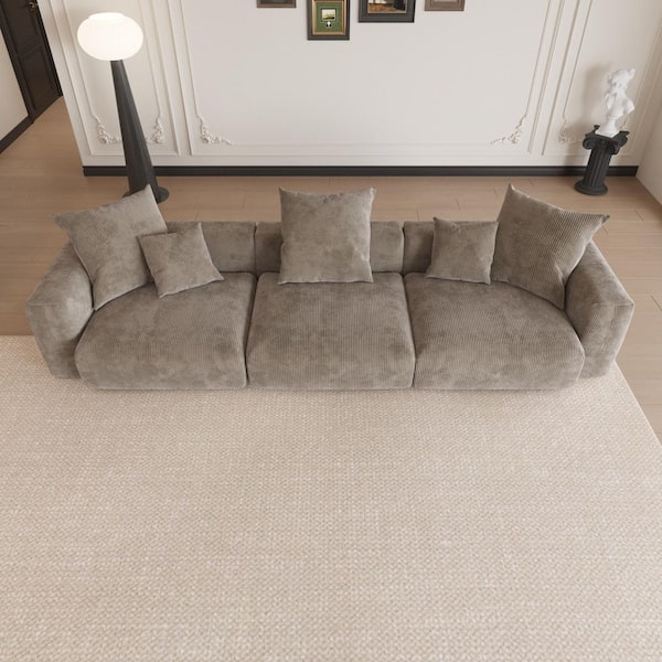 141.73 in. Square Arm Corduroy 3 Piece Apartment Sectional Sofa Couch with Deep Seat and Removable Covers in Brown