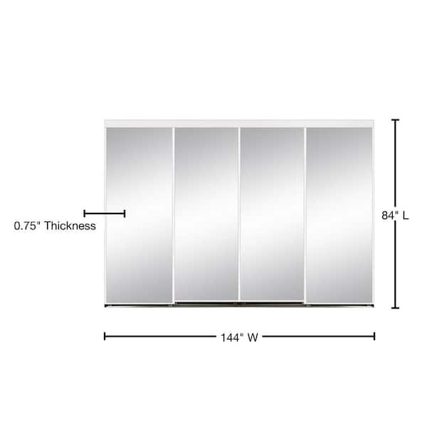 144 in. x 84 in. Aluminum Framed Mirror Interior Closet Sliding Door with White Trim