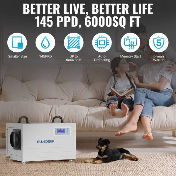 145 pt. 6,000 sq.ft. Bucketless Commercial Dehumidifier in White with Drain Hose, Automatic Defrost