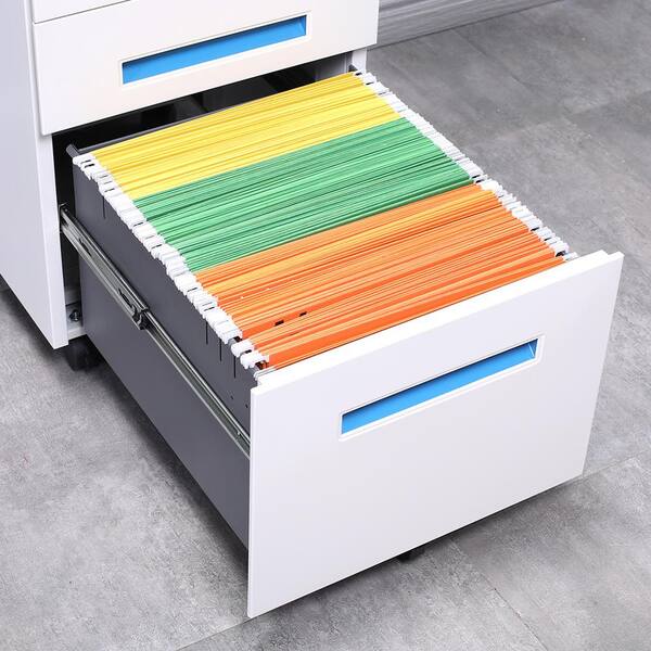 15.3 in. W x 17.7 in. D x 23.62 in. H White Rolling Lockable Linen Cabinet with 3-Drawers and Wheels for Legal Size