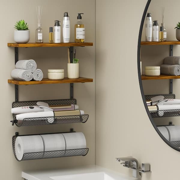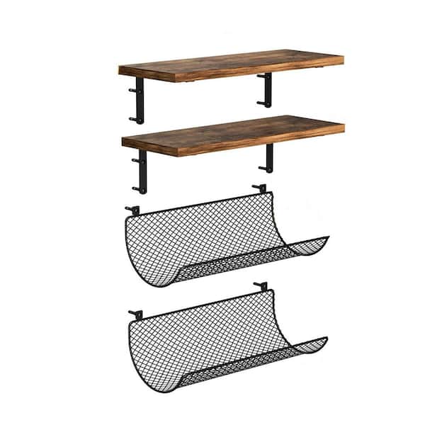 15.3 in. W x 5.8 in. D Brown Floating Shelves for Wall Decor, Curling Iron Holder, Decorative Wall Shelf, (Set of 4)