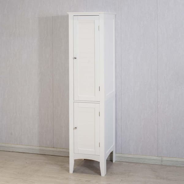 15.35 in. W x 15.35 in. D x 63 in. H White Linen Cabinet with 2 Shutter Doors for Bathroom