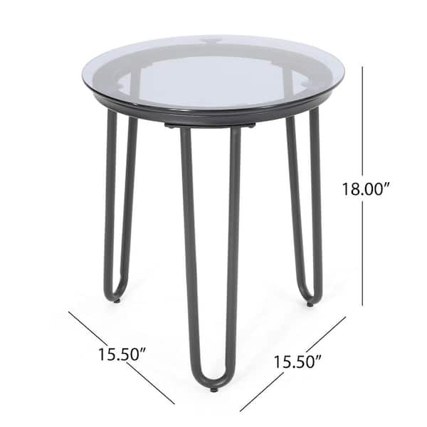 15.5 in. x 15.5 in. x 18 in. Black Round Metal Outdoor Patio Side Table With Tempered Glass Top