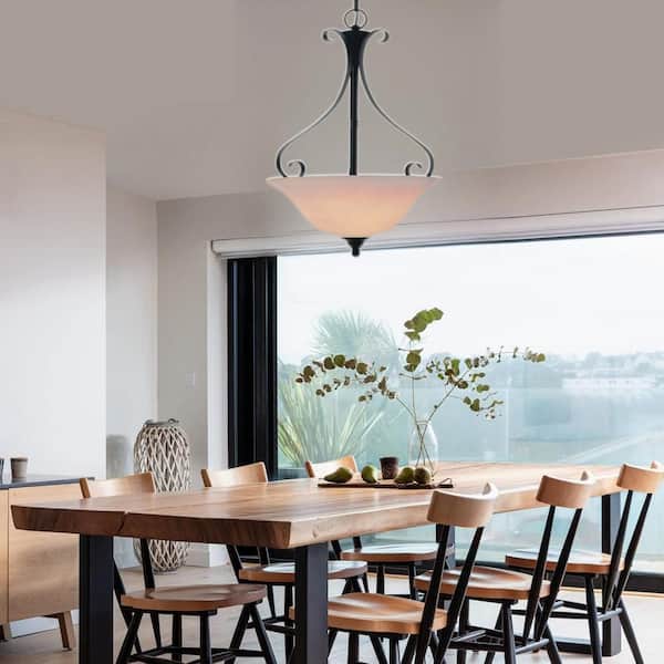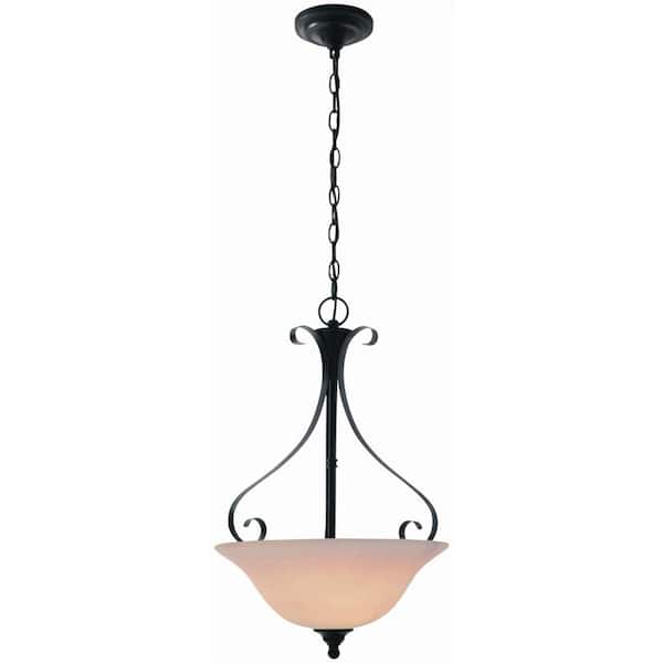 15.6 in. W x 24.5 in. H 3-Light Oil-Rubbed Bronze Pendant with Frosted White Glass Shade
