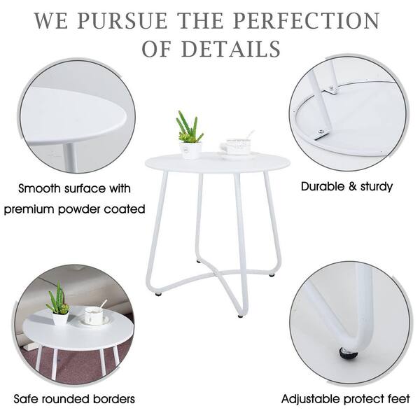 15.6 in. White Outdoor Side Table Round Metal Waterproof Portable Outdoor Side Table