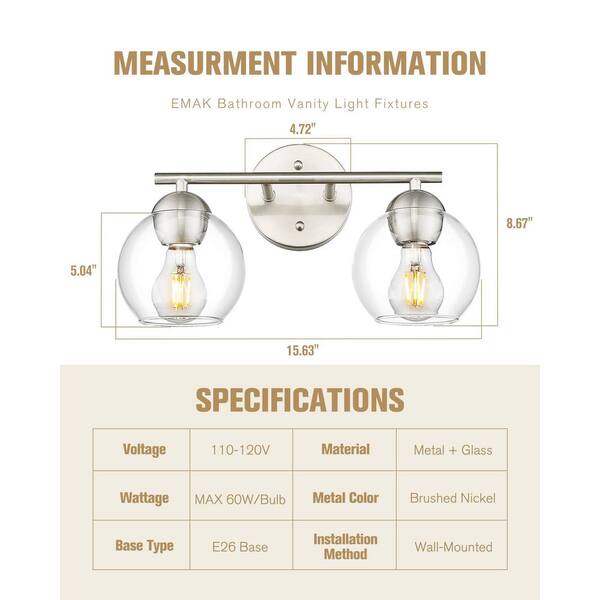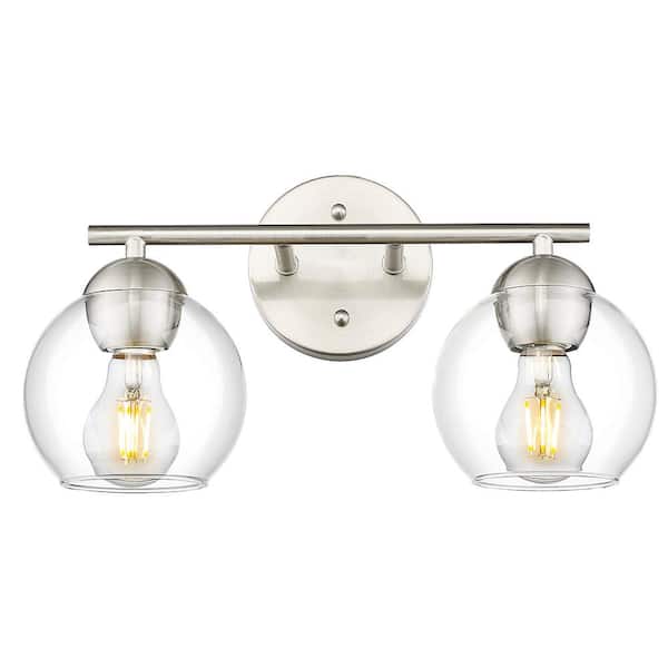 15.63 in. 2-Light Brushed Nickel Vanity Light with Clear Glass Shade