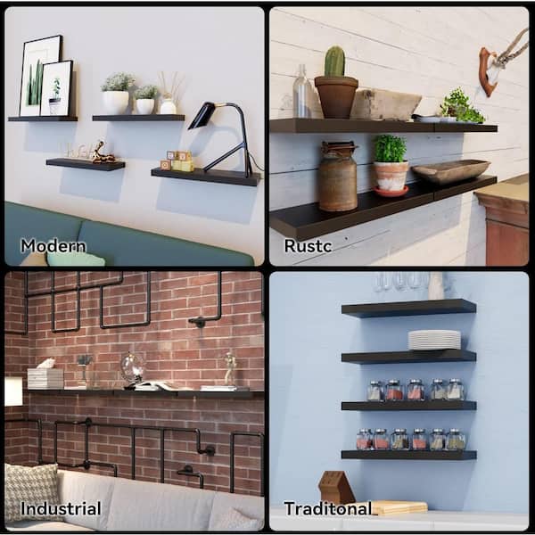 15.67 in. W x 5.71 in. D Black Wall Mounted Floating Shelves, 4 Sets Decorative Wall Shelf