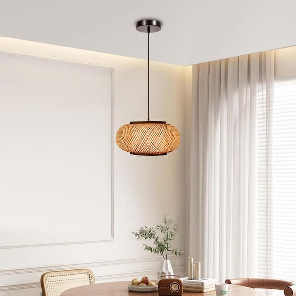 15.7 in. 1-Light Vintage Bamboo Rattan Lantern Pendant Light with Hand-Woven Bamboo Shade