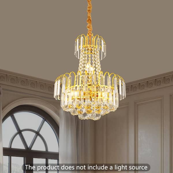 15.7 in. 6-Light Gold Modern K9 Clear Crystal Chandelier for Living Room Bedroom with No Bulbs Included
