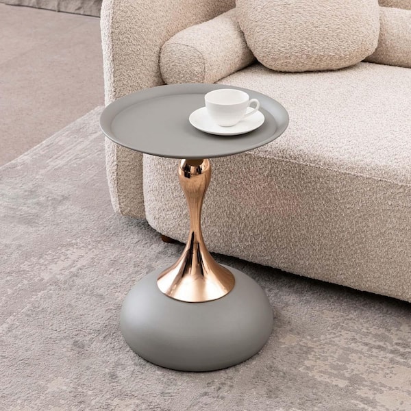 15.7 in. Gray Round Metal Mermaid Tail End Table Sofa Side Table Minimalist Beside Table for Couch, Sofa, Recliner