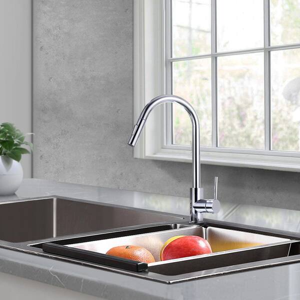 15.7 in. Single Handle 360° Spout Swivel Pull Down Sprayer Kitchen Faucet with Advanced Spray in Polished Chrome
