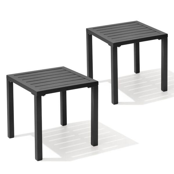 15.7 in. Square Aluminum Outdoor Side Table in Black (2-Pack)