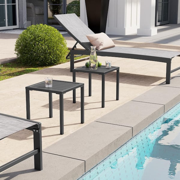15.7 in. Square Aluminum Outdoor Side Table in Black (2-Pack)