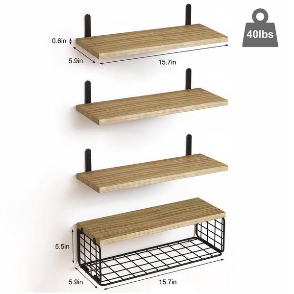 15.7 in. W x 5.9 in. D Rustic Brown Wood Wall Floating Shelves, Farmhouse Wall Decor Decorative Wall Shelf