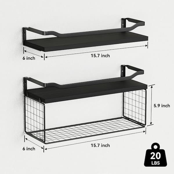 15.7 in. W x 5.9 in. H x 6 in. D Bathroom Shelves Over The Toilet Storage, Wall Mounted with Removable Legs- Black