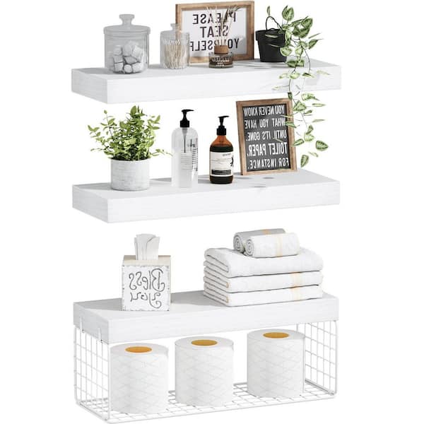 15.7 in. W x 6.7 in. D White Bathroom Shelves Over Toilet Floating, Set of 2 Decorative Wall Shelf