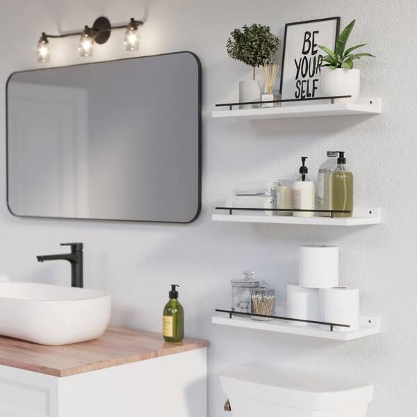 15.7 in. W x 6 in. D White Modern Decorative Wall Shelf Set with Metal Guardrail