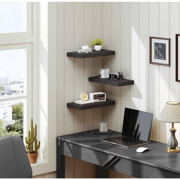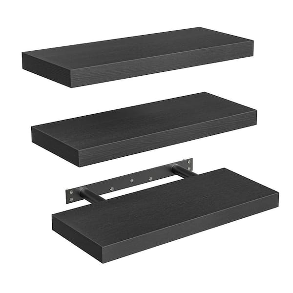 15.7 in. W x 7.9 in. D Black Floating Shelves for Wall, Wood Decorative Wall Shelf Set of 3