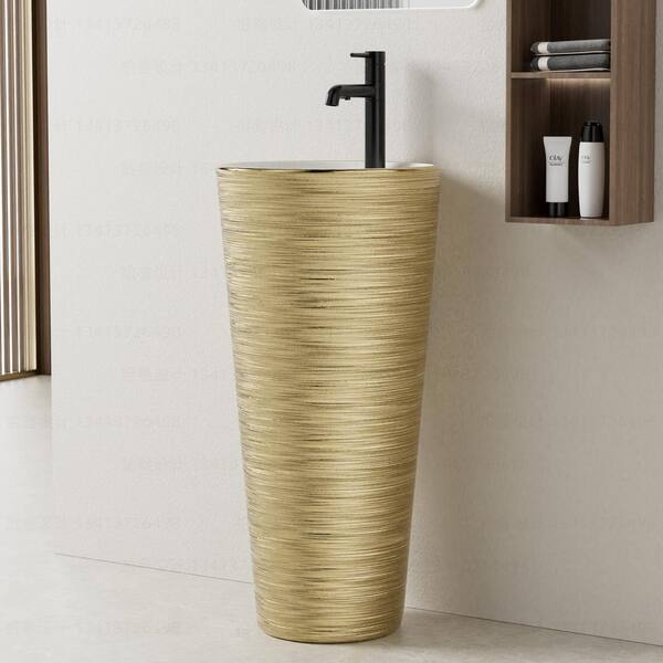 15.75 in. W x 15.75 in. D x 33 in. H Luxury Ceramic Round Pedestal Sink and Basin in Brushed Gold
