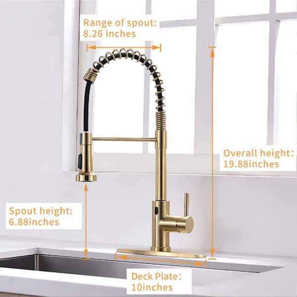 15. 7in Touchless Kitchen Faucet Brushed Gold Smart Sensor 360° Swivel Spout Auto Shut-Off Single Handle