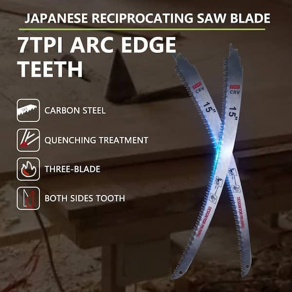 15 Arc Edge Reciprocating Saw Blade 7TPI Japanese Teeth with Curved Edge for Tree Trimming Wood Cutting 3 Pack