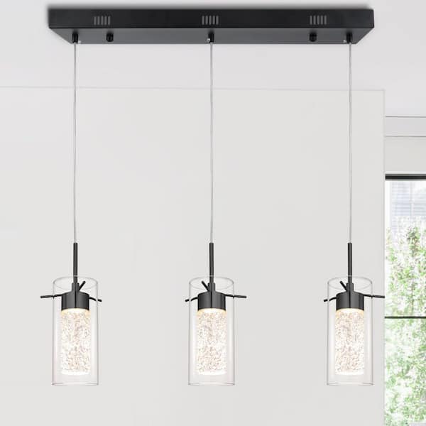 15-Watt 3-Light Black 3000K Warm White Light Integrated LED Pendant Lights with Crystal Glass Shade for Kitchen Island