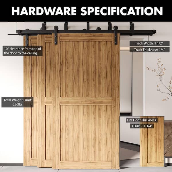 15 ft./180 in. Black Rustic Triple Track Bypass Sliding Barn Door Track and Hardware Kit for Triple Doors