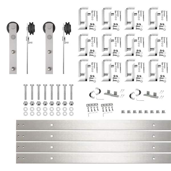15 ft./180 in. Brushed Nickel Double Track Bypass U-Shape Sliding Barn Door Hardware Kit - Straight Design Roller