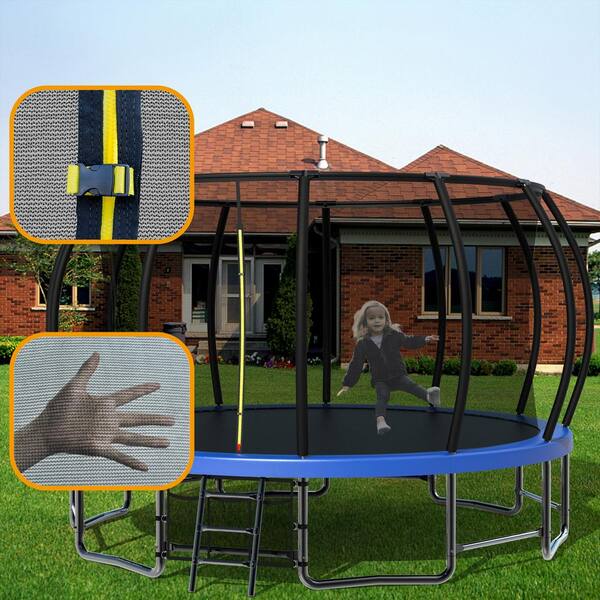 15 ft. Blue Galvanized Anti-Rust Outdoor Round Trampoline with Balance Bar with Enclosure Net and Carriage Bag