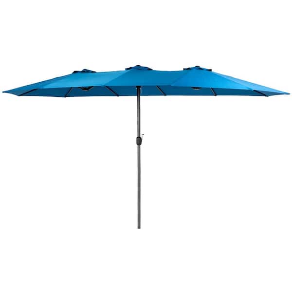 15 ft. Large Double Sided Steel Outdoor Patio Umbrella with Crank in Dark Blue