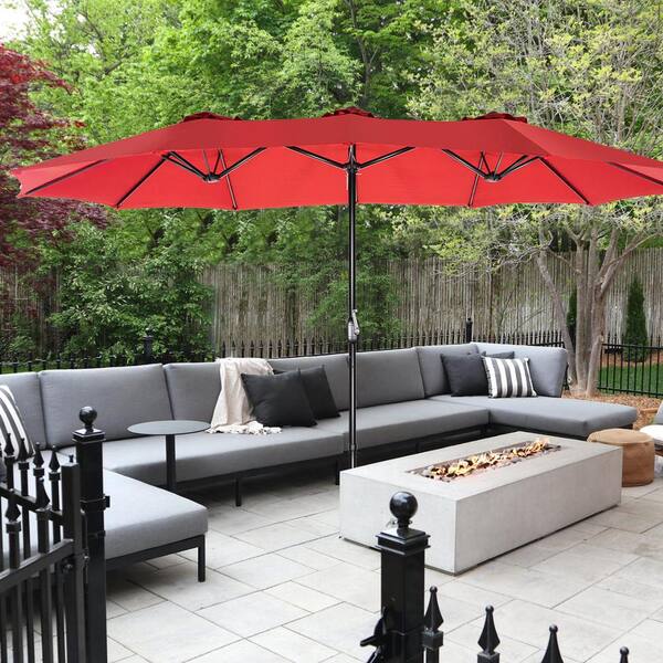 15 ft. Market Rectangle Patio Umbrella in Red
